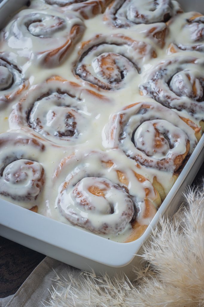 Mega, das frosting ist super abgestimmt. Habe Vanille Paste statt Zucker genommen. Den Teig würde ich nächstes Mal wohl mit etwas weniger Zucker machen. Aber ansich waren sie ein träumchen.. abends vorbereitet, zum Frühstück gebacken, bestrichen und genossen .habe 2 Auflaufformen benutzt weil ich kein Backblech habe 😅