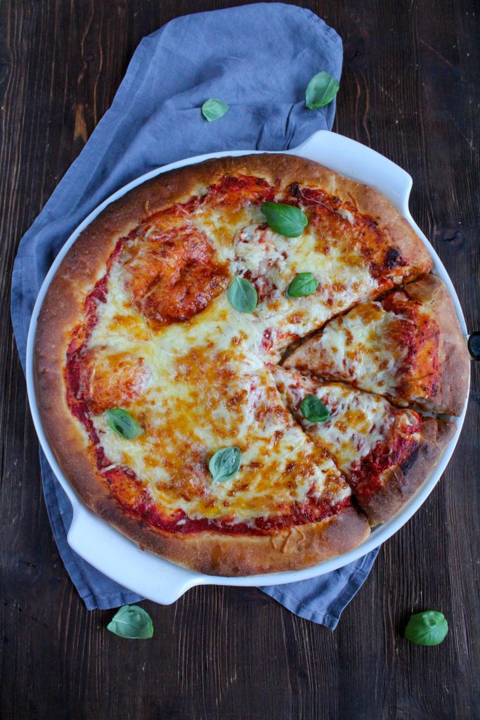 Tipp: Wenn ihr krosse Pizza liebt, investiert in einen Pizzastein. Diesen könnt ihr beim Vorheizen in den Ofen legen. Der Stein entzieht dem Teig Feuchtigkeit, wodurch ihr ein herrlich gleichmäßiges knuspriges Ergebnis bekommt.