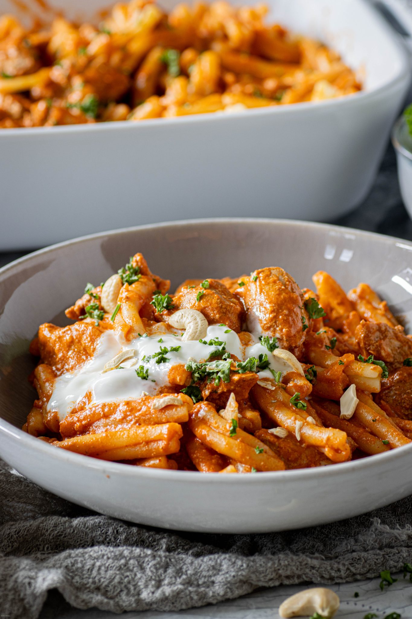Beim Kochen gilt: Joghurt und Quark nie in kochende Flüssigkeit geben. Ab etwa 60 bis 80 Grad beginnt das Eiweiß auszuflocken. Deshalb: immer erst am Ende hinzugeben, wenn die Hitze reduziert ist. Wer auf Nummer sicher gehen möchte, rührt das Milchprodukt vorher mit einem Teelöffel Speisestärke glatt, das stabilisiert das Eiweiß zuverlässig. Und Milchprodukte direkt aus dem Kühlschrank gerinnen schneller als solche mit Raumtemperatur: also kurz vorher herausstellen. Für Saucen, die auf jeden Fall cremig bleiben sollen, ist Crème fraîche übrigens die sicherste Alternative. Ihr hoher Fettgehalt schützt sie vor dem Ausflocken.