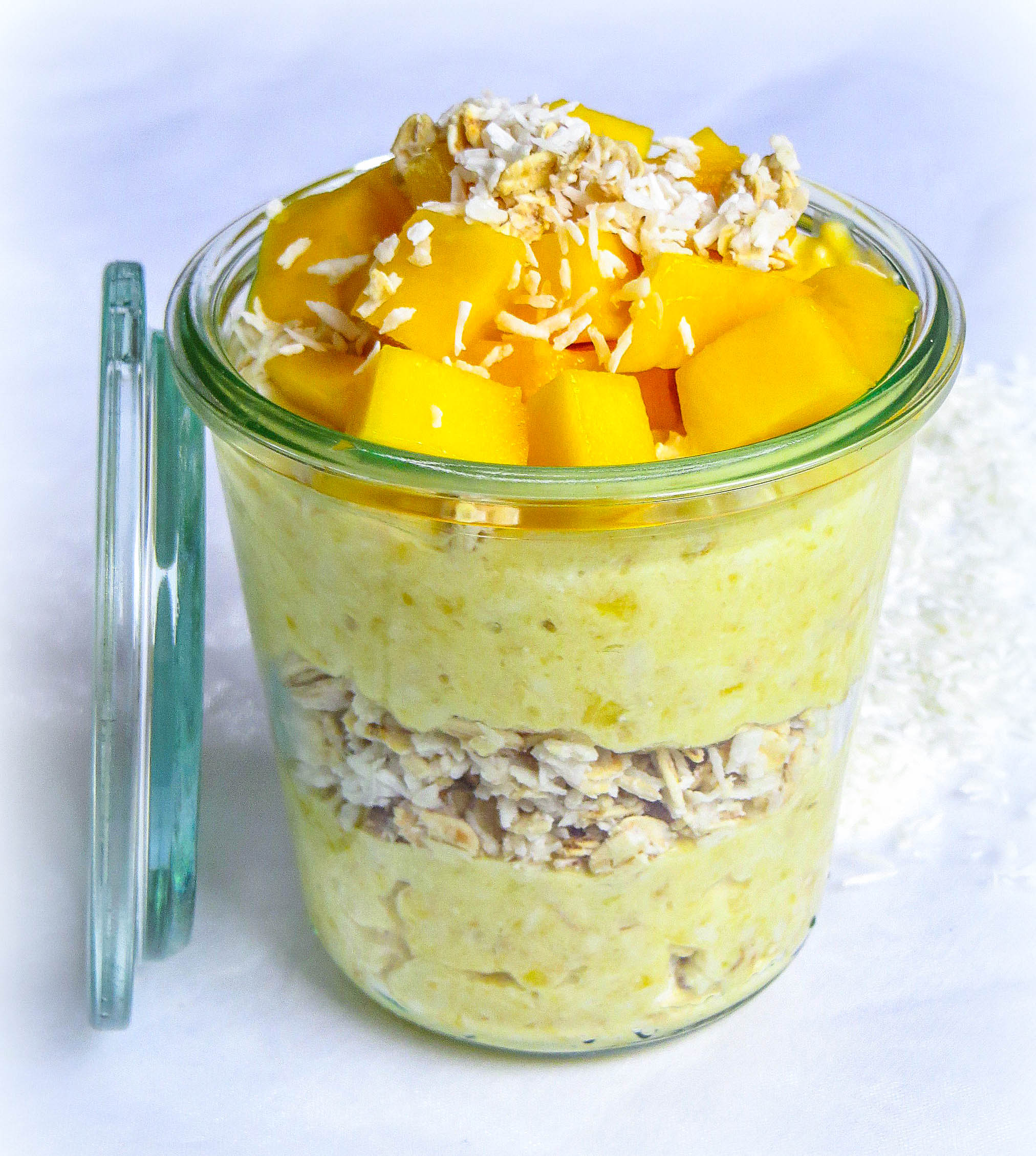 Liebt ihr es auch, ausgiebig zu frühstücken? Während der Woche hat man ja meist nicht soviel Zeit ein großes Frühstück vorzubereiten. Dann gibt´s oft ein Müsli, reichhaltigeren Joghurt oder auch ein Power-Shake. Heute gibt es einen einfachen Mango-Joghurt mit Kokos-Haferflocken für euch, der auch noch am nächsten Tag wunderbar fruchtig schmeckt.