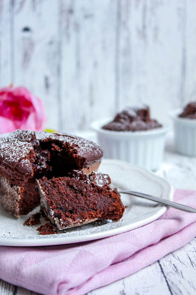Seid Ihr auch so kleine Schokoliebhaber? Dieses Schokoladen-Soufflé mit flüssigem Kern ist wirklich eine Sünde wert. Besonders schön ist der Moment, wenn man das scheinbar feste Soufflé mit dem Löffel ansticht und die noch flüssige Schokolade herausfließt. Einfach göttlich!